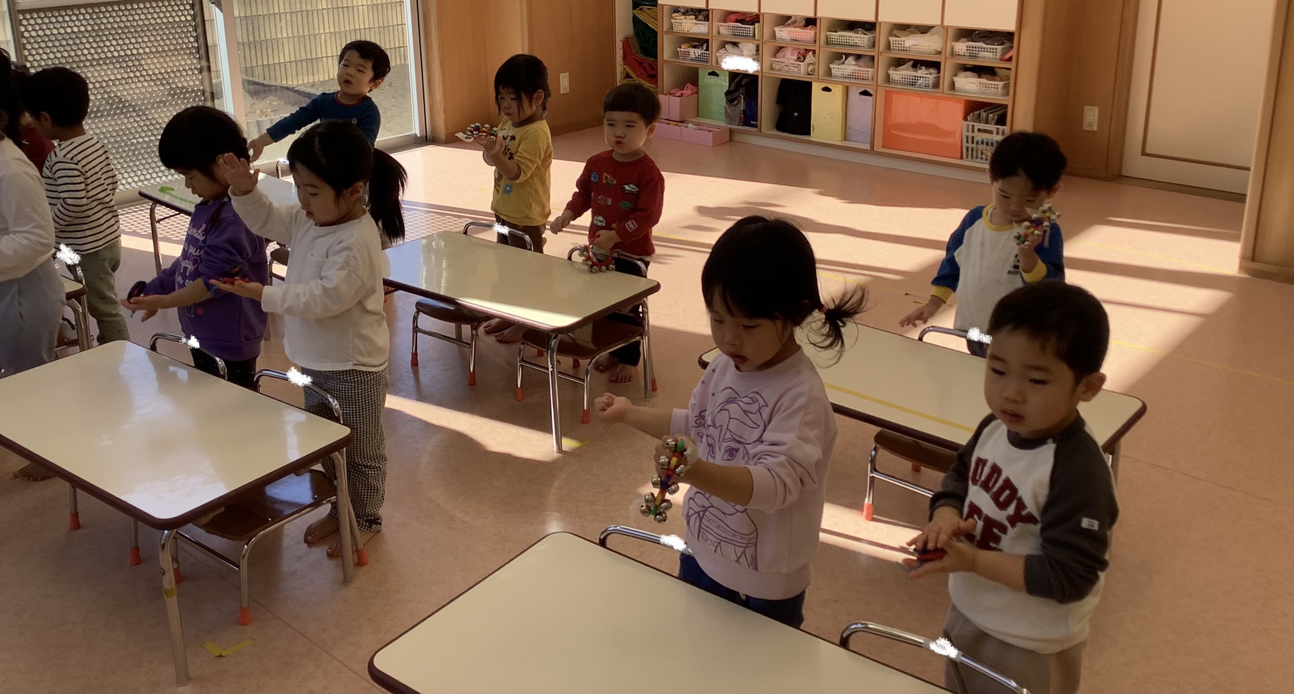 はな組の1番人気はカスタネットです!自分で指に紐を通してつけるのは難しいので、日々自分でつけられるように頑張っています✨