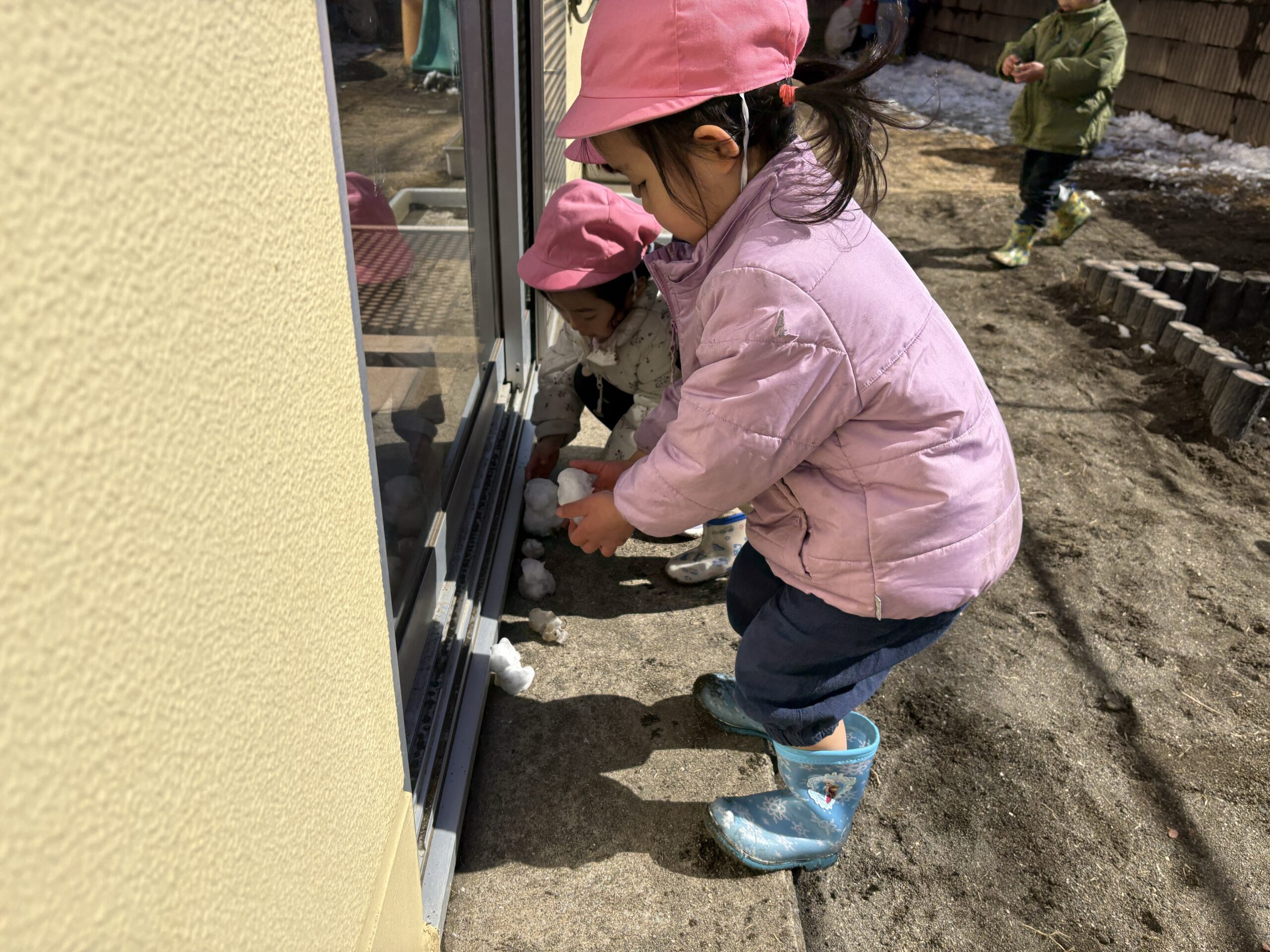 お家で雪遊びをしたことを話してくれる子も沢山いました。保育園でもたっぷり雪で遊び楽しい思い出ができました❄️
