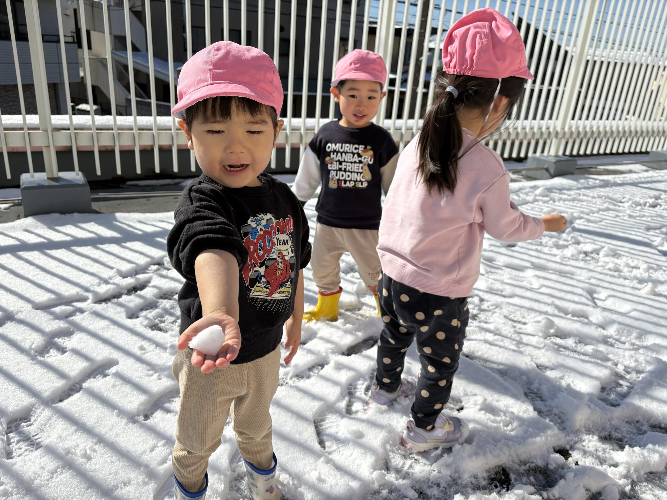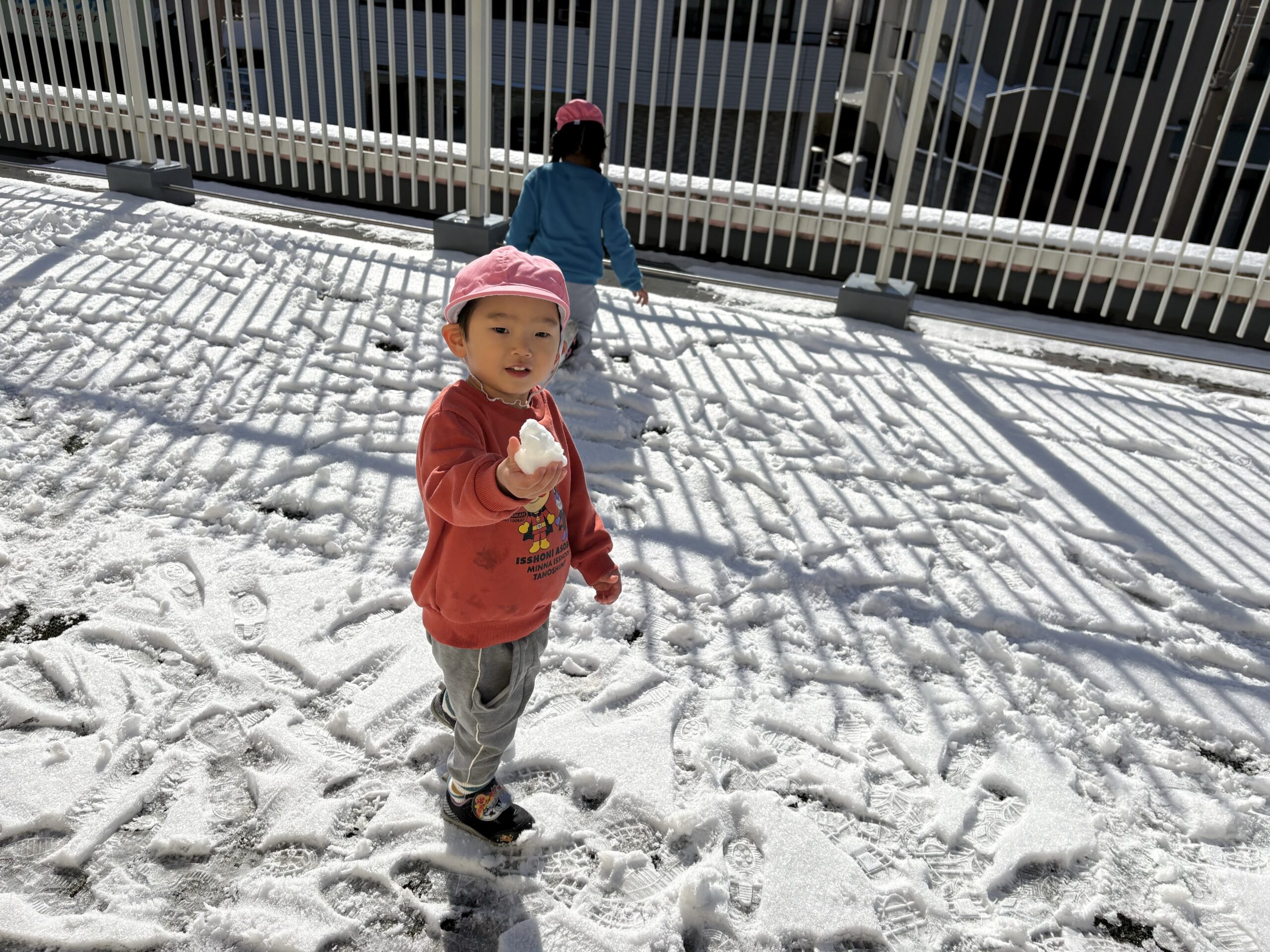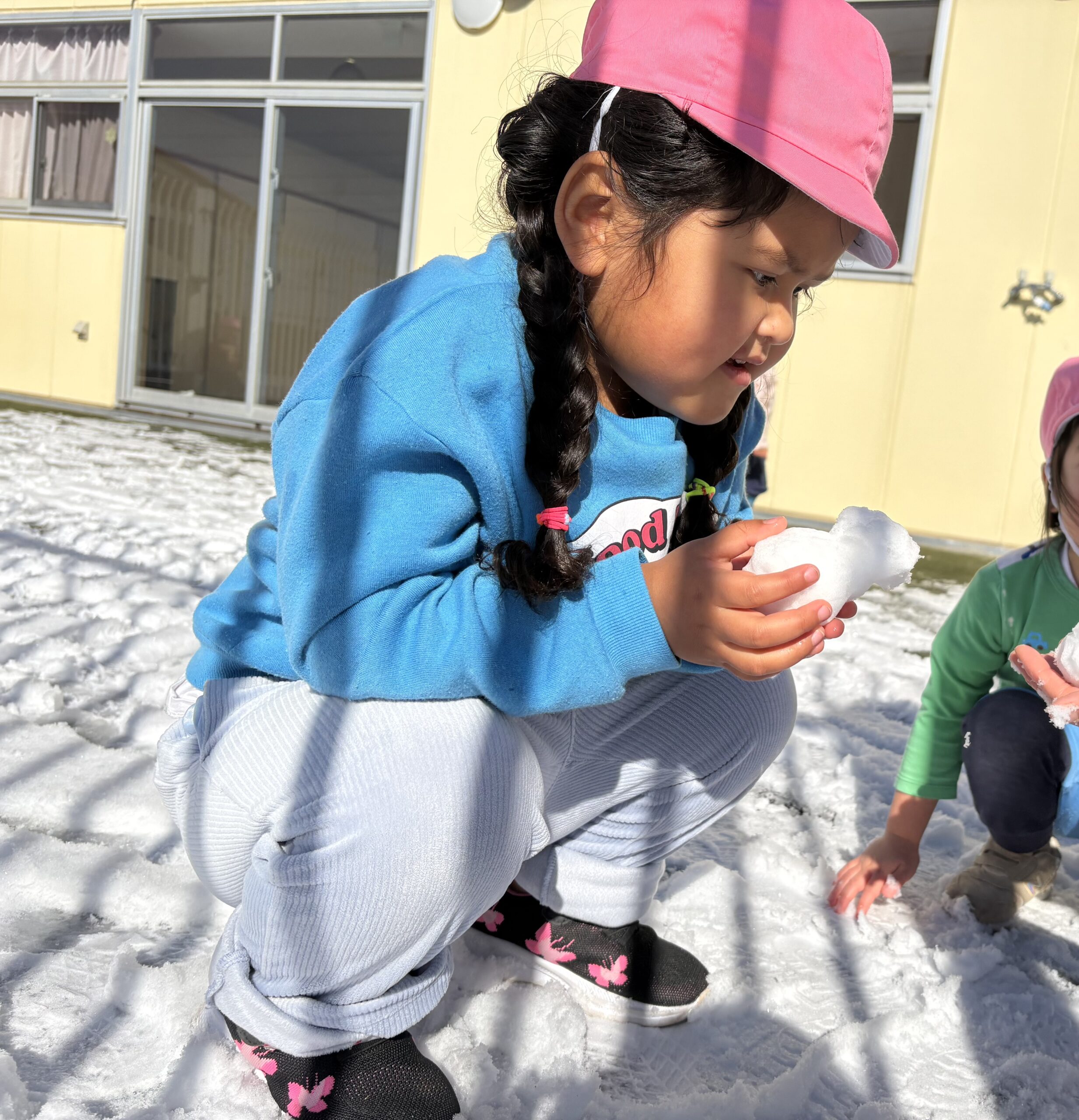 「冷たーい!」と言いながら雪を丸めて嬉しそうに見せてくれました♪