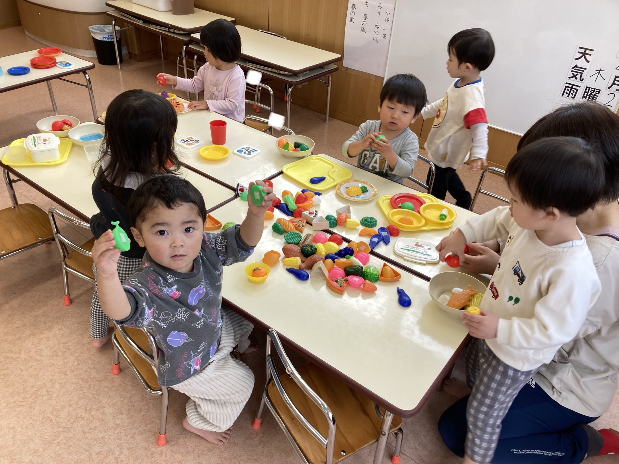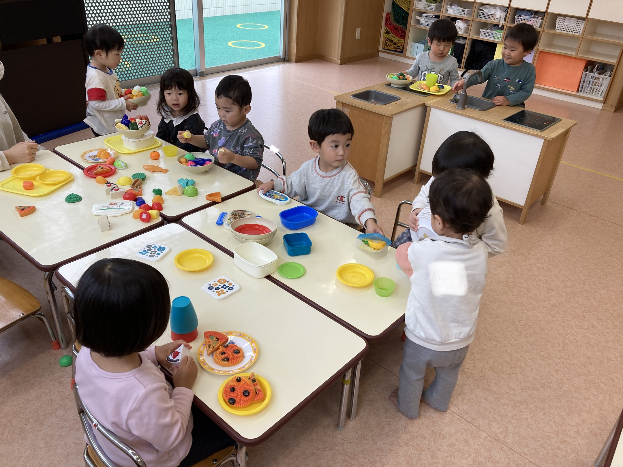 はな組さんと一緒にローテーションや日課に混ざって楽しんでいるお友だちや好きなおもちゃを見つけて遊べるようになってきお友だち。まだ、ちょっぴり表情はかたいですが、これから笑顔をいっぱいお届けできるよう好きな遊びを探しながら毎日楽しんでいきたいと思います。