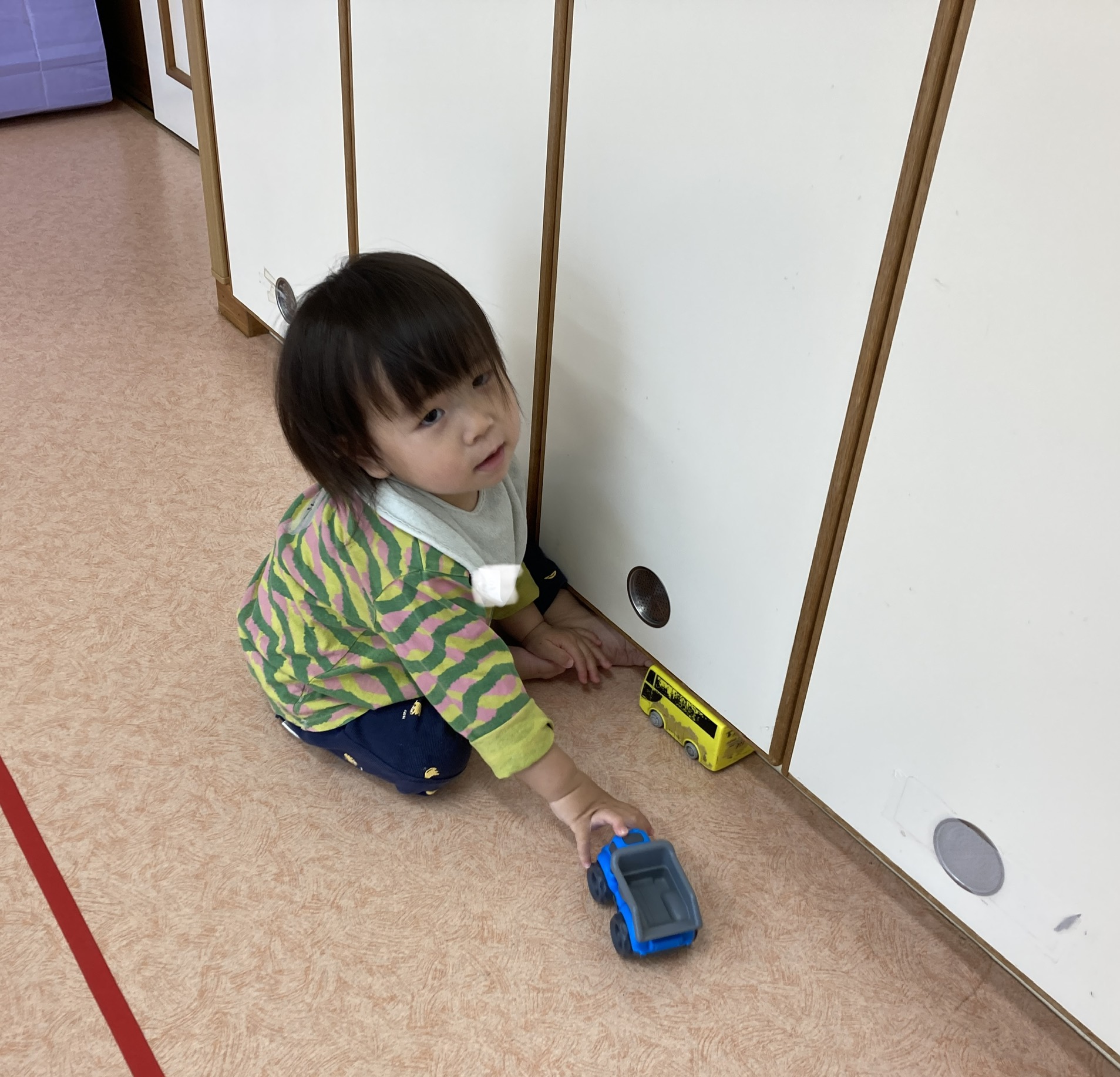 車の玩具で遊んだり、音楽を流したりして過ごしています。